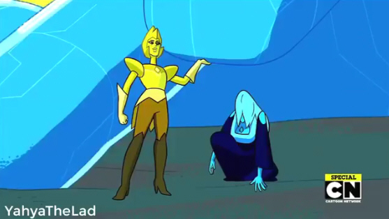 However, during the reception, Blue and Yellow Diamond arrive and awaken the Cluster.